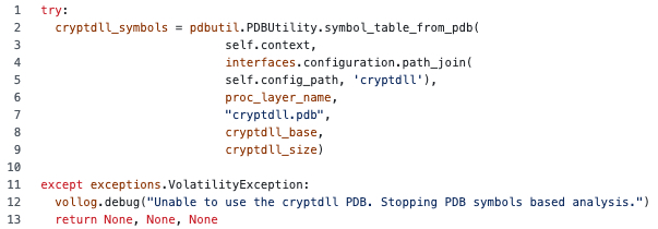 Once cryptdll.dll has been located, its information can then be passed to the PDB utility APIs: