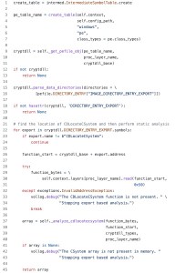 If these bytes can be read, then the _analyze_cdlocatecsystem function is called, which leverages capstone to perform the static disassembly necessary to locate both symbols. After locating them, it will construct the array object using the same method as described when the PDB file symbols were used.