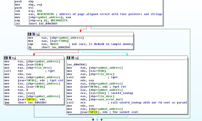 descriptor. This is then stored at offset 0x10f8 within the global structure. sockfd_lookup is then called with the