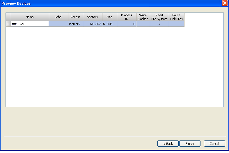 After you have pulled back all devices, you will see them in the pane on the left. Below you can see a disk image and two RAM samples, in this case one from a live machine and one acquired sample. You can, however, pull back several RAM and disk previews with EE. (I’m just giving you an example, since I don’t currently have EE with which to create nice screenshots).