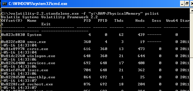 You can run Volatility over this exposed PhysicalMemory file as you would any other memory sample. This can be useful for triage or “sampling” of a machine without having to pull back the entire memory, which can be quite large. Plus you can script out Volatility to run over every memory sample that is mounted at once. The caveat of course is that you are interacting with the machine and therefore changing its state. You might overwrite evidence as you process the memory live. This is something that you have to consider in your IR plan and outside the scope of this tutorial.